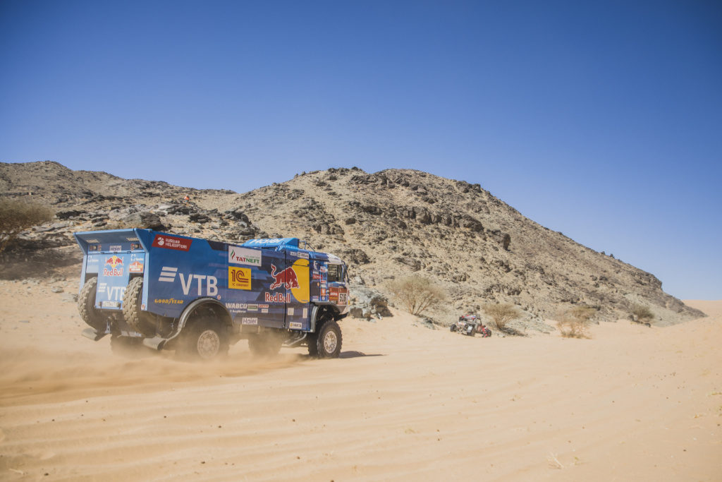 Svůj úplně první soutěžní den skvěle zvládla také Praga V4S DKR. Aleš Loprais, Khalid Alkendi a Petr Pokora provedli zbrusu nový dakarský speciál náročnou tratí v devátém nejrychlejším čase, přestože i třetí českou posádku přibrzdila technická „drobnost“. Jezdec Instaforex Loprais Teamu za svými zády nechal například i vládce tří předchozích ročníků Eduarda Nikolajeva s Kamazem, jenž dnes uzavírá první desítku.