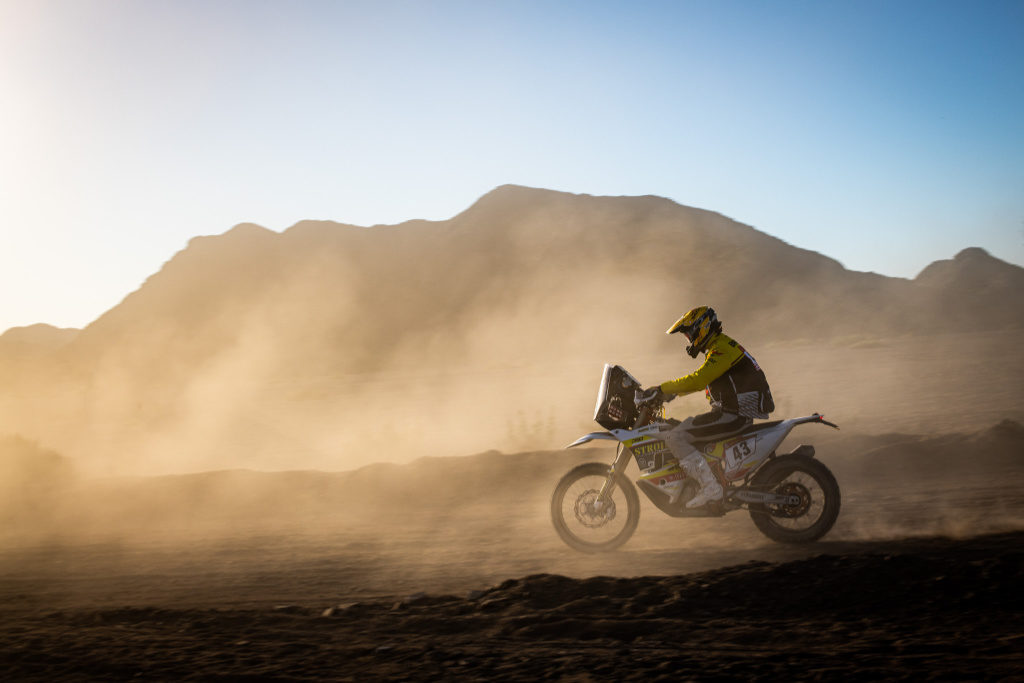 „Na začátku jsem si zajel osm kilometrů. Špatně jsem si zkalibroval kilometry, spletl jsem si, kde je waypoint a ztratil tak dvanáct minut. Navíc jsem v polovině etapy dvakrát spadl, ale naštěstí pokaždé v dunách,“ přiznává celkově sedmadvacátý Milan Engel.