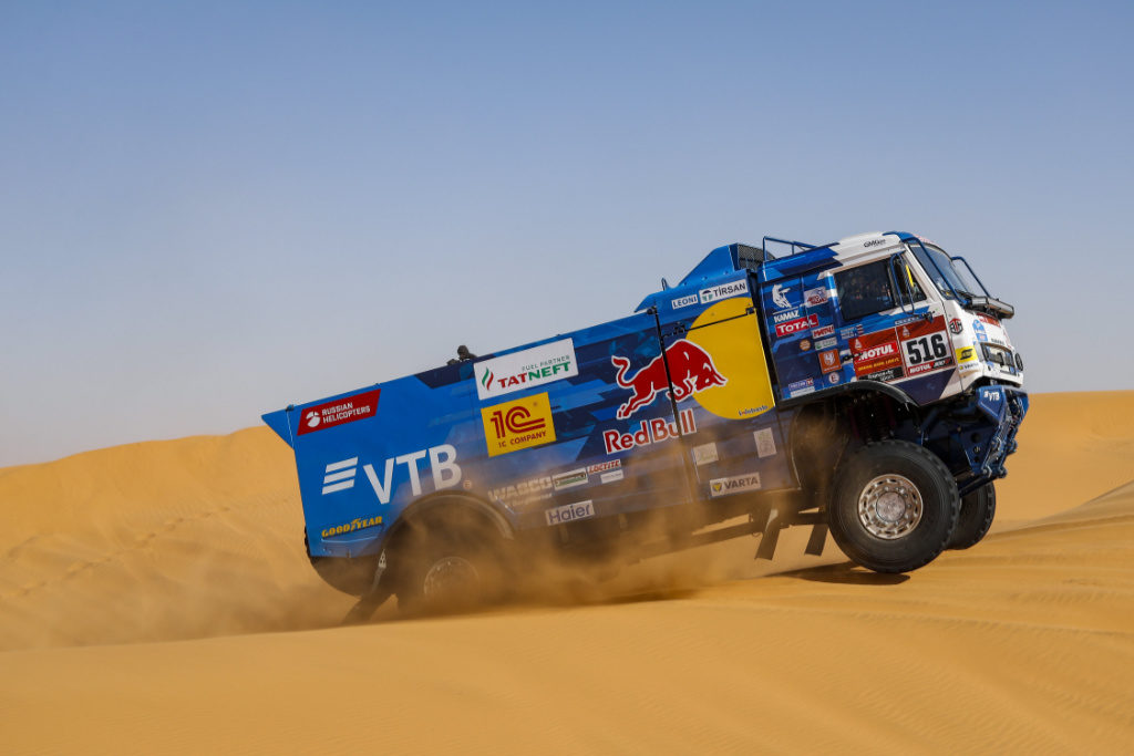Po dni volna v saúdskoarabské metropoli pokračovala Rally Dakar 2020 sedmou etapou z Rijádu do Wadi Al-Dawasiru, jejíž součástí byla i nejdelší speciálka celé soutěže (546 km). Rychlá trať svědčila Kamazům, které obsadily první čtyři pozice. Andrej Karginov, Andrej Mokjejev a Igor Leonov vedli na všech mezičasech, a nakonec o tři sekundy udolali posádku Dmitrije Sotnikova.