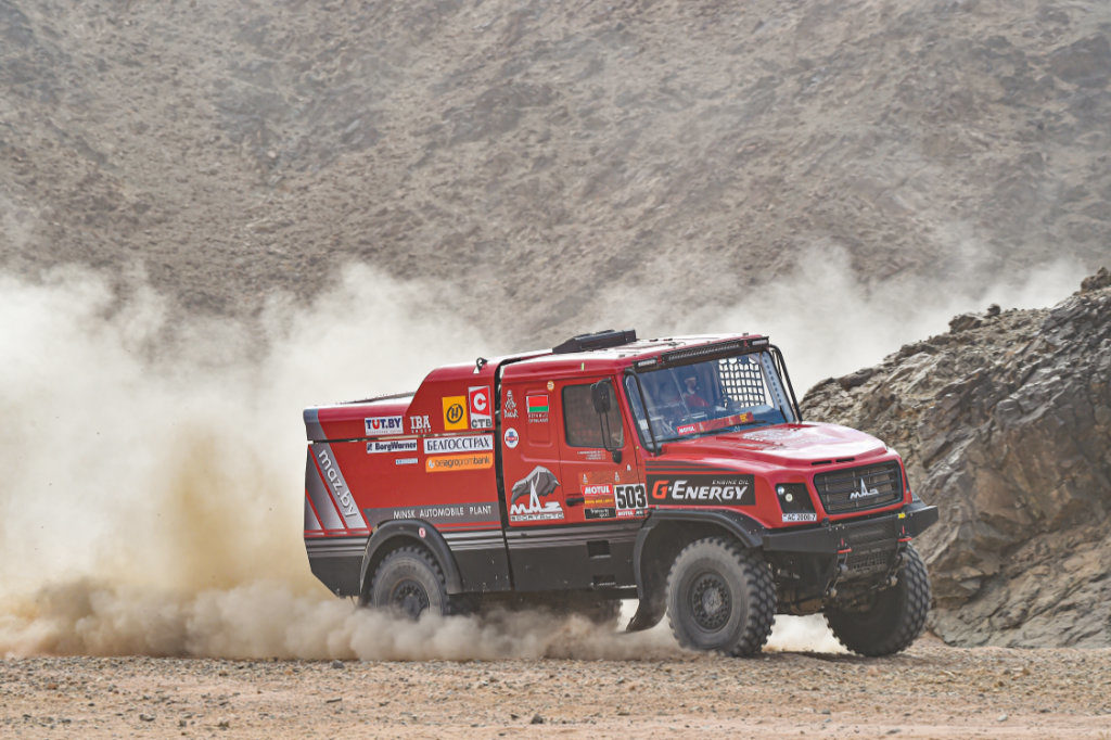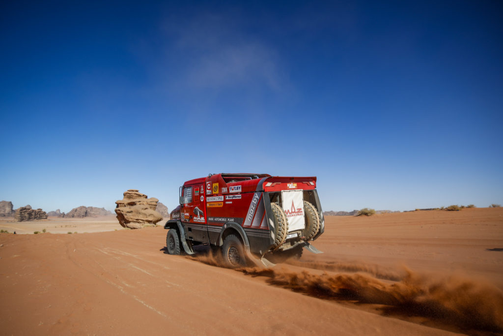Pro posádku Sergej Vjazovič, Pavel Haranin, Anton Zaporošenko je situace o to nepříjemnější, že k ní došlo v maratonské etapě. Do středečního bivaku v Shubaytahu nemá přístup nikdo kromě účastníků a pořadatelů, a tak si Vjazovičova trojice bude muset s odstraněním závad poradit pouze s pomocí posádek dvou trambusových Mazů, která de facto plní roli rychlé asistence nového „kapotniku“. Využít samozřejmě mohou jen díly, které tyto tři kamiony vzaly do maratonské etapy s sebou.