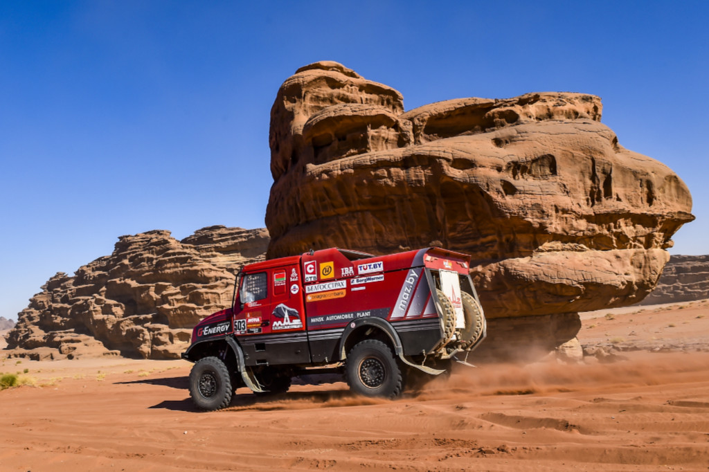 Závodící šéf týmu MAZ-Sportauto Sergej Vjazovič v průběhu Rally Dakar 2020 několikrát konstatoval, že „rudí zubři“ nestačí na konkurenční Kamaz kromě jiného také kvůli nižšímu výkonu svého motoru. V Minsku tudíž upřeli pozornost i tímto směrem. „Kapotnik“ číslo 2 proto osadili výkonnějším agregátem Gyrtech/Caterpillar.